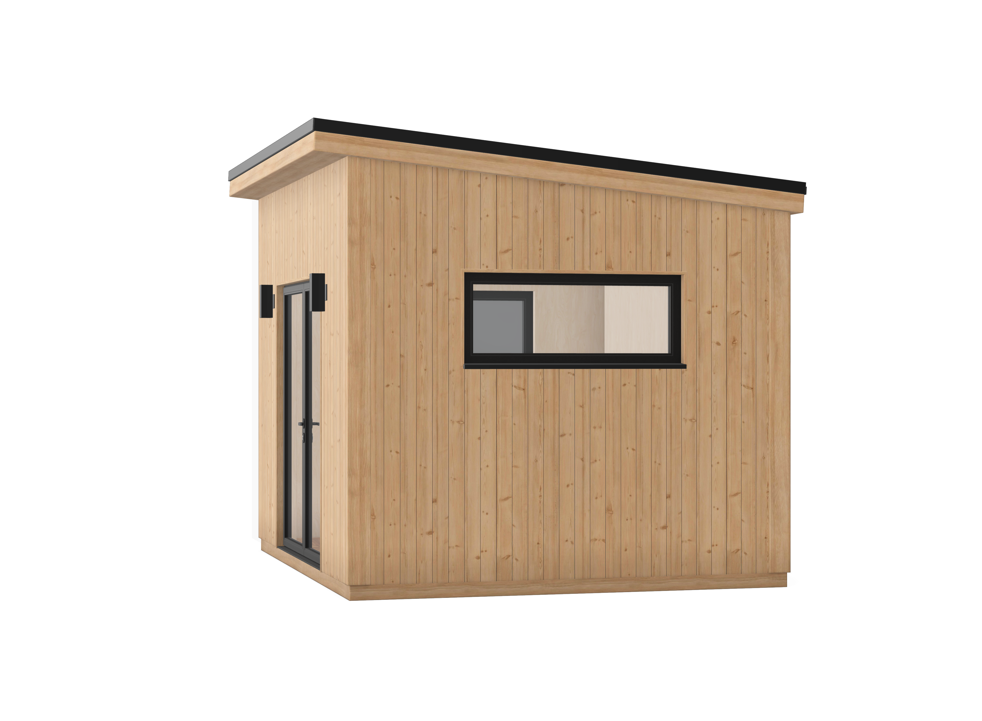 A compact, fully assembled garden room with an integrated sauna, designed to stay under 120 sq ft — allowing installation in many areas without a permit. Featuring a 3' overhang with integrated deck, covered side returns, and right-side customization for doors and overhangs, it’s the perfect solution for work, recovery, and daily wellness.