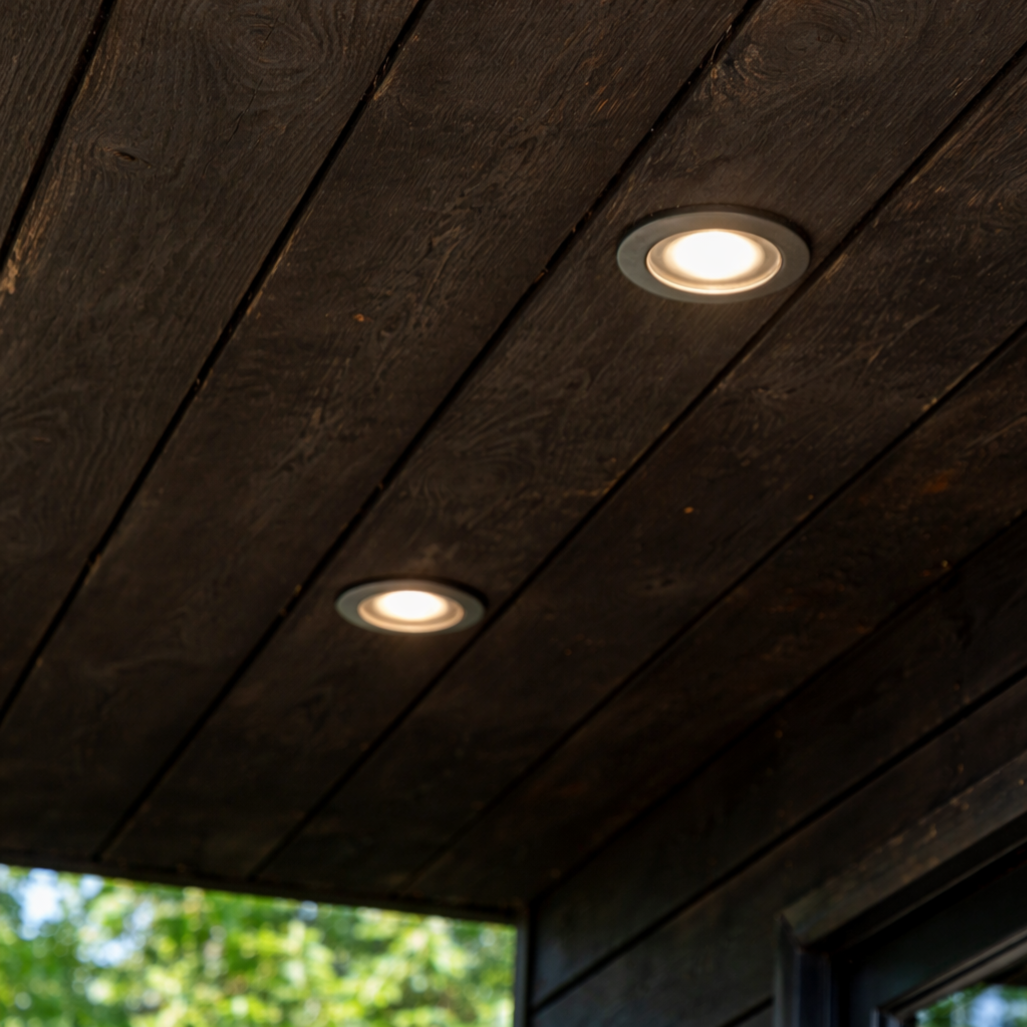 Four interior recessed dimmable lights are included as standard. Optional recessed lighting in the exterior overhang and architectural sconce fixtures are available to enhance presence and visibility.